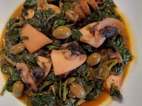 Εκτέλεση για τις σουπιές με σουπιές με σπανάκι και ελιές: