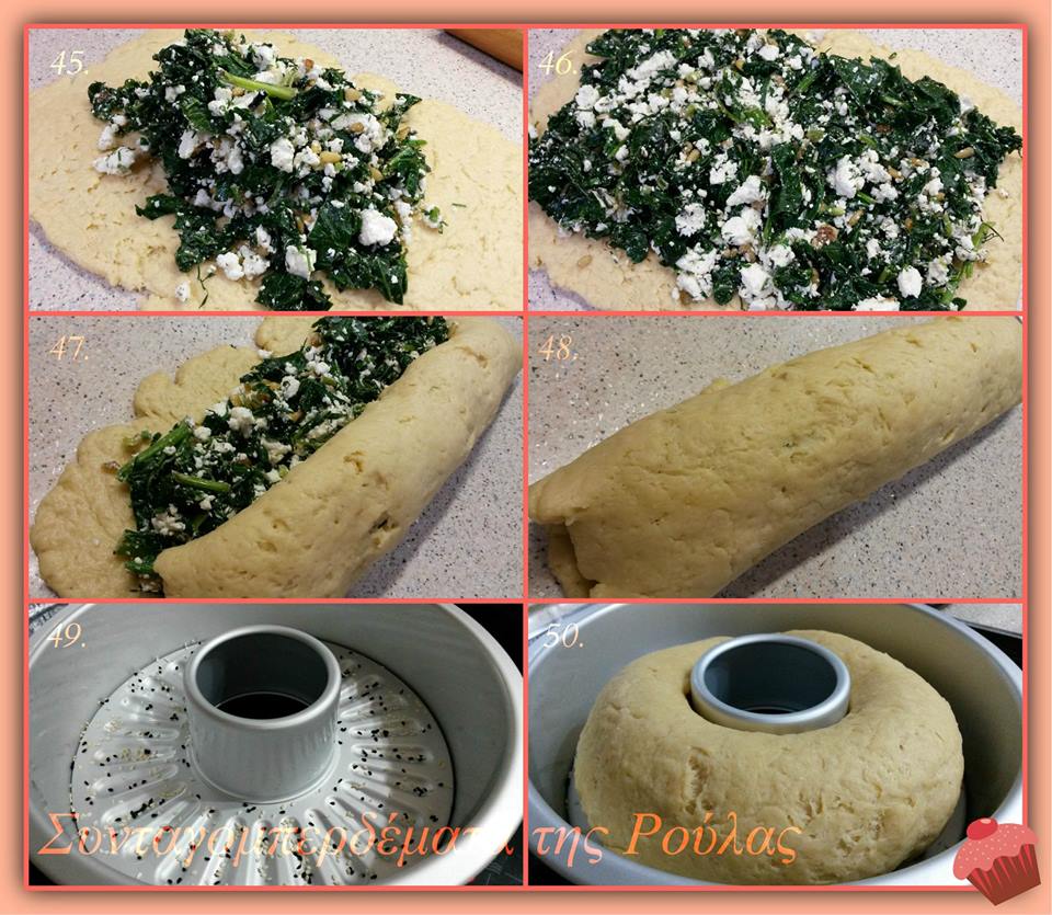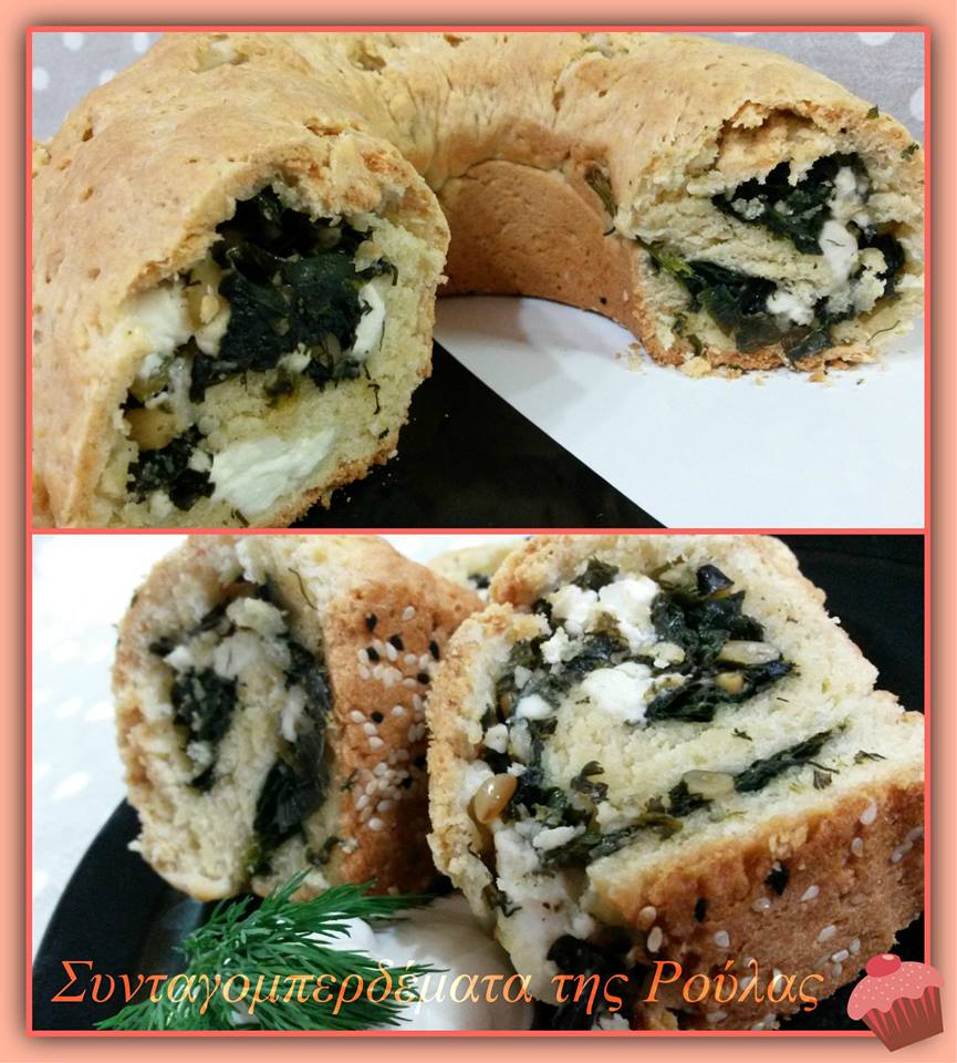 ΣΠΑΝΑΚΟΠΙΤΑ ΡΟΛΟ ΜΕ ΥΠΕΡΟΧΗ ΖΥΜΗ ΚΟΥΡΟΥ !!! Αυτή τη σπανακόπιτα, με την τέλεια ζύμη κουρού, θα τη λατρέψετε ! Είναι τόσο νόστιμη και εύκολη, που είμαι σίγουρη ότι θα στολίζει συχνά το τραπέζι σας ! Είναι επίσης ιδανική και για τραπέζι / μπουφέ καλεσμένων ! Υλικά για τη γέμιση : – 200 γρ. φρέσκο σπανάκι – 4 κρεμμυδάκια φρέσκα – 1 χεριά μαϊντανό – 1 χεριά άνηθο – 3 κ.σ. κουκουνάρι – 1 κ.γ. ρίγανη – λίγο πιπέρι – 200 γρ. τυρί φέτα τριμμένο – 2 κ.σ. κορν φλάουερ – ελάχιστο ελαιόλαδο για το τηγάνι Υλικά για τη ζύμη κουρού : – 600 γρ. αλεύρι γ.ο.χ. – 6 κ.γ. κοφτά μπέικιν πάουντερ – 1 ½ κ.γ. κοφτό αλάτι – 150 γρ. ηλιέλαιο – 220 γρ. γιαούρτι στραγγιστό – 2 αυγά Εκτέλεση : Ετοιμάζουμε τη γέμιση : – Πλένουμε το σπανάκι και το τοποθετούμε σε σουρωτήρι να στεγνώσει. – Ψιλοκόβουμε τα κρεμμυδάκια, το μαϊντανό και τον άνηθο. – Σε ένα τηγάνι προσθέτουμε λίγο ελαιόλαδο και τσιγαρίζουμε τα κρεμμυδάκια. – Συνεχίζουμε το τσιγάρισμα προσθέτοντας το κουκουνάρι, το σπανάκι, το μαϊντανό, τον άνηθο και τέλος προσθέτουμε τη ρίγανη και το πιπέρι. – Μόλις μαραθούν τα υλικά μας, αποσύρουμε από τη φωτιά, αδειάζουμε τη γέμιση σε ένα καθαρό σκεύος και αφήνουμε να κρυώσει. – Όταν κρυώσει, πασπαλίζουμε με το κορν φλάουερ, προσθέτουμε το τυρί φέτα τριμμένο, ανακατεύουμε και αφήνουμε στην άκρη. Ετοιμάζουμε τη ζύμη : – Σε μια λεκάνη κοσκινίζουμε το αλεύρι (απαράβατος κανόνας) με το μπέικιν πάουντερ. – Προσθέτουμε το αλάτι, ανακατεύουμε, σχηματίζουμε στο κέντρο μια λακουβίτσα και προσθέτουμε και τα υπόλοιπα υλικά (λάδι, γιαούρτι, αυγά ) και ζυμώνουμε έως ότου προκύψει ζύμη που δεν θα κολλάει στα χέρια. Εάν σας βγει πολύ σφιχτή η ζύμη (αυτό εξαρτάται από το αλεύρι που θα χρησιμοποιήσουμε), συμπληρώστε ελάχιστο λαδάκι και ζυμώστε καλά να απορροφηθεί. – Τοποθετούμε τη ζύμη σε καθαρή επιφάνεια και συνεχίζουμε το ζύμωμα για 2 -3 λεπτά. – Έπειτα με τη βοήθεια του πλάστη ανοίγουμε φύλο παραλληλόγραμμο, όχι πολύ λεπτό, απλώνουμε πάνω τη γέμιση και τυλίγουμε προσεκτικά σε ρολό. – Σε μια στρογγυλή φόρμα την οποία έχουμε λαδώσει και πασπαλίσει με σουσάμι, τοποθετούμε το ρολό μας γύρω από το δαχτυλίδι της φόρμας. Εάν δεν έχουμε φόρμα με δαχτυλίδι , μπορούμε να χρησιμοποιήσουμε ένα απλό ταψάκι στρογγυλό και να τοποθετήσουμε κυκλικά το ρολό. Δεν φοβόμαστε να ανοίξει στο ψήσιμο γιατί δεν φουσκώνει η ζύμη. – Ψήνουμε σε προθερμασμένο φούρνο, αερόθερμο, στους 160 βαθμούς (αντιστάσεις 180 βαθμούς), για 50 λεπτά περίπου. Σερβίρουμε ζεστή ή κρύα και απολαμβάνουμε !!!