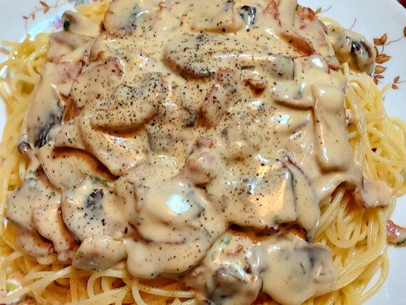 Εκτέλεση για τα σπαγγέτι με άσπρη σάλτσα και μανιτάρια