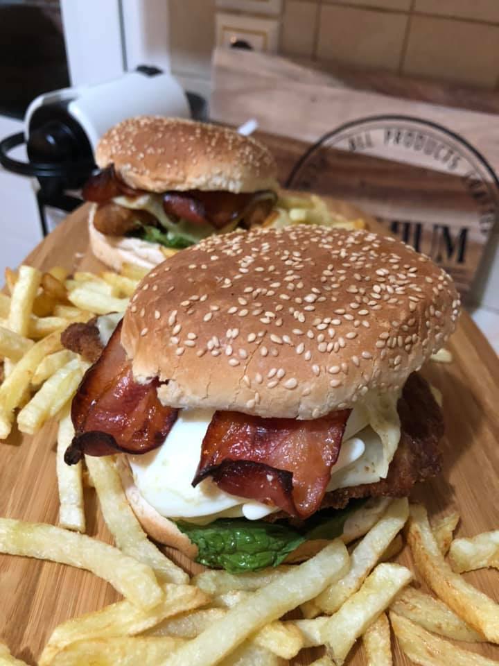 Για το στήσιμο: κόβουμε τα ψωμάκια στην μέση, βάζουμε από πάνω μαρούλι, από 2 φιλέτα, μπέικον, τυρί, αυγό. Βάζουμε τα burger στον φούρνο να λιώσει το τυρί, ανοίγουμε προσθέτουμε ντομάτα, κέτσαπ και σερβίρουμε με τηγανητές πατατούλες.