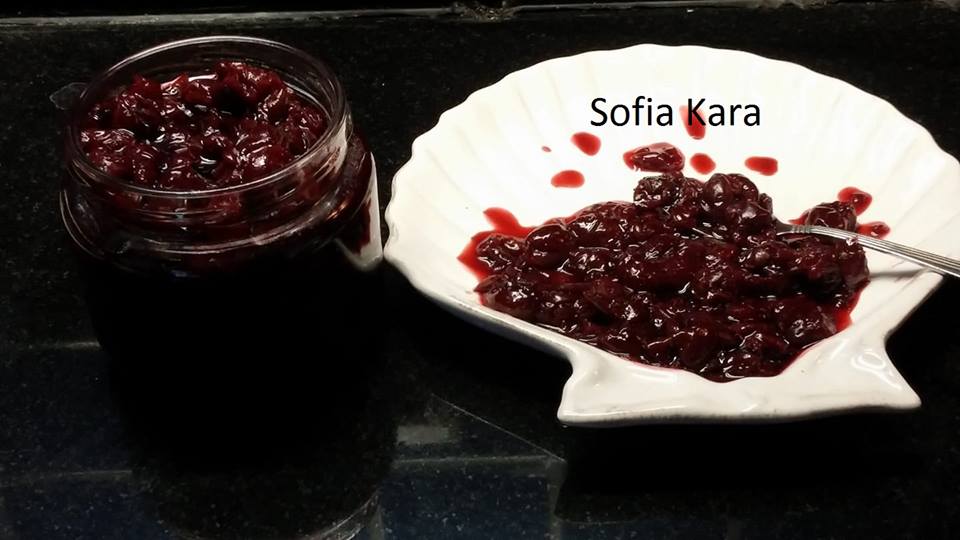 ΣΠΙΤΙΚΗ ΒΥΣΣΙΝΑΔΑ ΚΑΙ ΒΥΣΣΙΝΟ ΓΛΥΚΟ ΜΕ ΣΤΕΒΙΑ Η βυσσιναδα και το γλυκο βυσσινο γινονται τον Ιουνιο και τον Ιουλιο μηνα! Ειναι ενα καταπληκτικο ,γευστικο και δροσιστικο ροφημα που θυμιζει καλοκαιρι! Καταπληκτικο το γλυκο του με παγωτο ντοντουρμα οπως το λενε εδω στην Ξανθη! Καθε χρονο κανω μεγαλη ποσοτητα γιατι αν και Ιουνιος ειναι δυσευρετα! Υλικα 7 κιλα βυσινα ακαθαριστα 3 κουτια ζαχαρη στεβια” Ζωγραφος” 4 βανιλιες χυμο απο ενα λεμονι πηκτικο konjac απο τα βιολογικα Βαζα καπακια καινουργια 1 κ γ αλατι για συντηριτικο Εκτελεση Εδω ειναι ολη η ταλαιπωρια! Το καθαρισμα του βυσσινου απο το κουκουτσι του! Φυσικα σε καθε πολεμο εχουμε και απωλειες! Εβγαλα τα κουκουτσια ενα ενα απο τα βυσσινα αφου τα επλυνα καλα! Εμειναν καθαρα 6 κιλα! Τα τοποθετησα σε μια μεγαλη λεκανη και προσθεσα 3 κουτια ζαχαρη στεβια ! Τα αφησα ολο το βραδυ στο ψυγειο για να βγαλουν τα υγρα τους! Την επομενη μερα τα εβαλα σε μια μεγαλη κατσαρολα και τα εβρασα περιπου μια ωρα! Στη συνεχεια στραγγισα τα βυσσινα σε μια λεκανη και κρατησα το χυμο που εβγαλε! Εβαλα τα βυσσινα στην κατσαρολα με 2 μεγαλα ποτηρια νερο, 2 βανιλιες ,1κγ αλατι και τα εδωσα μια βραση! {Αν χρειαστει μπορειτε να προσθεσετε λιγη στεβια ακομη}! Προσθεσα το μισο χυμο λεμονιου και λιγο πηκτικο {οχι πολυ θα δειτε αναλογα τα βυσσινα που εχετε} και ετοιμο το γλυκακι μου να το βαλω στα αποστειρωμενα βαζα μου! Τα βαζα και τα καπακια τα αποστειρωνω στο φουρνο στους 100β για δεκα λεπτα αφου τα πλενω καλα! Γεμιζω τα βαζα με προσοχη ,σκουπιζω το στομιο του βαζου ,σφιγγω δυνατα τα καπακια και αναποδογυριζω! Οταν κρυωσουν ειναι ετοιμα! Ηρθε η σειρα της βυσσιναδας! Τον χυμο που κρατησα τον βαζω στην κατσαρολα με 2 βανιλιες και το μισο λεμονι! Δινω μια βραση, προσθετω 2 κ γ πηκτικο και αδειαζω τη βυσσιναδα με χωνι στα αποστειρωμενα μπουκαλια! Τα αποστειρωνω οπως και τα βαζα! Μολις κρυωσουν τα κλεινω με τα καπακια τους και στο ψυγειο! Οταν τη χρησιμοποιησω, βαζω μονο 2 δαχτυλα χυμο στο ποτηρι με κρυο νερο και απολαμβανω! Μπορει να εχει δουλεια πολυ ,αλλα αξιζει τον κοπο ! Ολο το καλοκαιρι θα εχετε να πιειτε χυμο δροσιστικο και γλυκο για το παγωτο σας και φυσικα διαιτης Καλη επιτυχια!!!!!