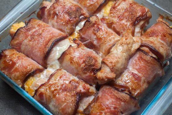 1 μεγάλο Στήθος κοτόπουλο 10-15 φέτες Μπέικον 10-12 φέτες Τυρί ένταμ Αλάτι-πιπέρι Εκτέλεση