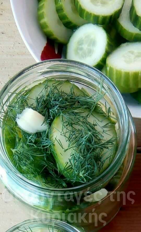 4 μεγάλα αγγούρια 1 λίτρο νερό 2 κουτ.σούπας αλάτι 2 φλιτσανακια ξίδι άσπρο άνηθο, σκόρδο