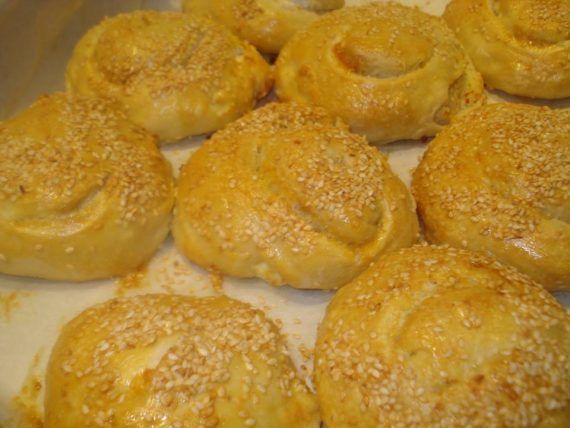 Στριφτα τυροπιτακια για το πρωινο μας καποια εψησα και τα υπολοιπα καταψυξη! 900 γρ αλευρι 1 γεμάτο κουταλάκι γλυκού αλάτι 1 κουταλιά σούπας ζάχαρη 2 φακ. ξηρή μαγιά 8 κουταλιές σούπας ελαιόλαδο συν έξτρα για το άλειμμα του μπωλ και των στριφτων 240 ml χλιαρό γάλα 2 ασπράδια μεσαίου αβγού 10 κουταλιές σούπας χλιαρό νερό Φετα και ανθοτυρο μαζι 2 κροκους για το πασπαλισμα και σουσαμι! Βαζουμε το αλευρι σε ενα μπολ και προσθέτουμε τη ζάχαρη και τη μαγιά και ανακατευουμε με ένα κουτάλι να ενωθούν τα υλικά. Ριχνουμε το ελαιόλαδο, το γάλα, τα ασπράδια αβγού και το νερό. Αναμείγνυουμε με τα χέρια μας όλα τα υλικά ώσπου να σχηματιστεί μια μαλακιά ζύμη που να μην κολλάει στα χέρια. Αδειάζουμε τη ζύμη πάνω σε μια καθαρή και ελαφρώς αλευρωμένη επιφάνεια και ζυμώνουμε τη ζυμη για περίπου 7 λεπτά ή μέχρι να έχουμε μια απαλή κι ελαστική ζύμη. Αν τυχόν κολλάει απειροελάχιστα (όχι περισσότερο) στα χέρια, δεν πειράζει.Αφηνουμε τη ζυμη να διπλασιαστει και τη χωριζουμε σε 14 μπαλακια!Αναλογα με το ποσο μικρα τα θελουμε! Ανοιγουμε καθε μπαλακι μια μακροστενη λωριδα βαζουμε το τυρακι η ο,τι αλλο θελουμε το κλεινουμε και το στριβουμε σαν σαλιγκαρακι! Αλειφουμε με αυγο ριχνουμε λιγο σουσαμι και τα αφηνουμε λιγο να φουσκωσουν!Ψηνουμε στους 180 β προθερμασμενο φουρνο μεχρι να κοκκινισουν,περιπου μιση ωρα ,αναλογα το φουρνο!