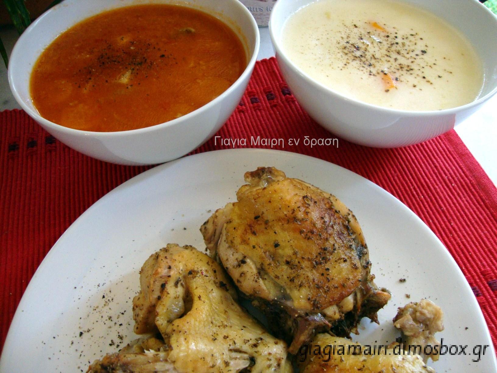 Κοτόσουπα σε δυο γεύσεις Γιατί το απαιτεί ο καιρός!!! μια κοτούλα χωριάτικη και δυο σουπίτσες υπέροχες!