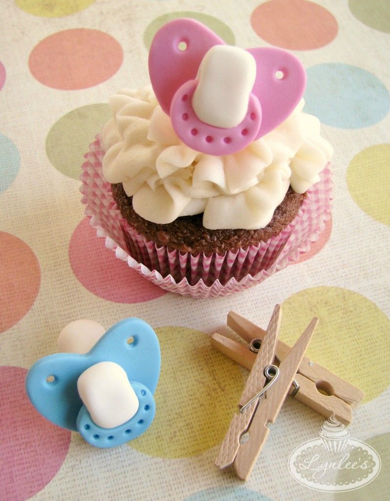 Δεν είναι τέλεια;Μην σας ξεγελά η φωτογραφία.Είναι πανεύκολα στην κατασκευή τους.Οι πιπίλες είναι από ζαχαρόπαστα. Βασικές συνταγές για cup cakes έχουμε πολλές στο daddy-cool.gr και θα βρείτε εδώ