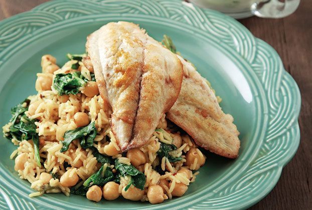 Αρωματικό πιλάφι με ρεβύθια και φιλέτο ψαριού