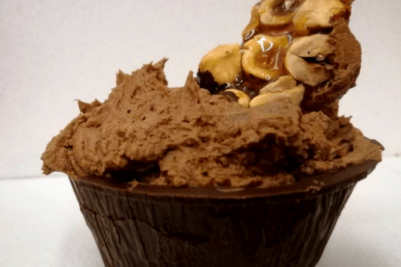 Σύνθεση • Απομακρύνουμε με πολύ προσοχή τη θήκη. • Προσθέτουμε την κρέμα σοκολάτας, γαρνίρουμε με τα καραμελωμένα φουντούκια και απολαμβάνουμε.
