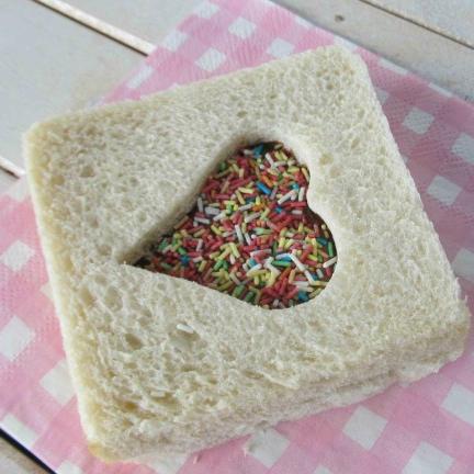 Αλείψτε φέτες του τοστ (χωρίς κόρα) με βούτυρο και μαρμελάδες διαφόρων γεύσεων (βερίκοκο, κεράσι, φράουλα, πορτοκάλι, σύκο κ.ά). Κόψτε το τοστ σε τέσσερα τετράγωνα κομμάτια, τοποθετείστε τα όμορφα σε μία πιατέλα και θα έχετε ένα σούπερ χρωματιστό αποτέλεσμα.
