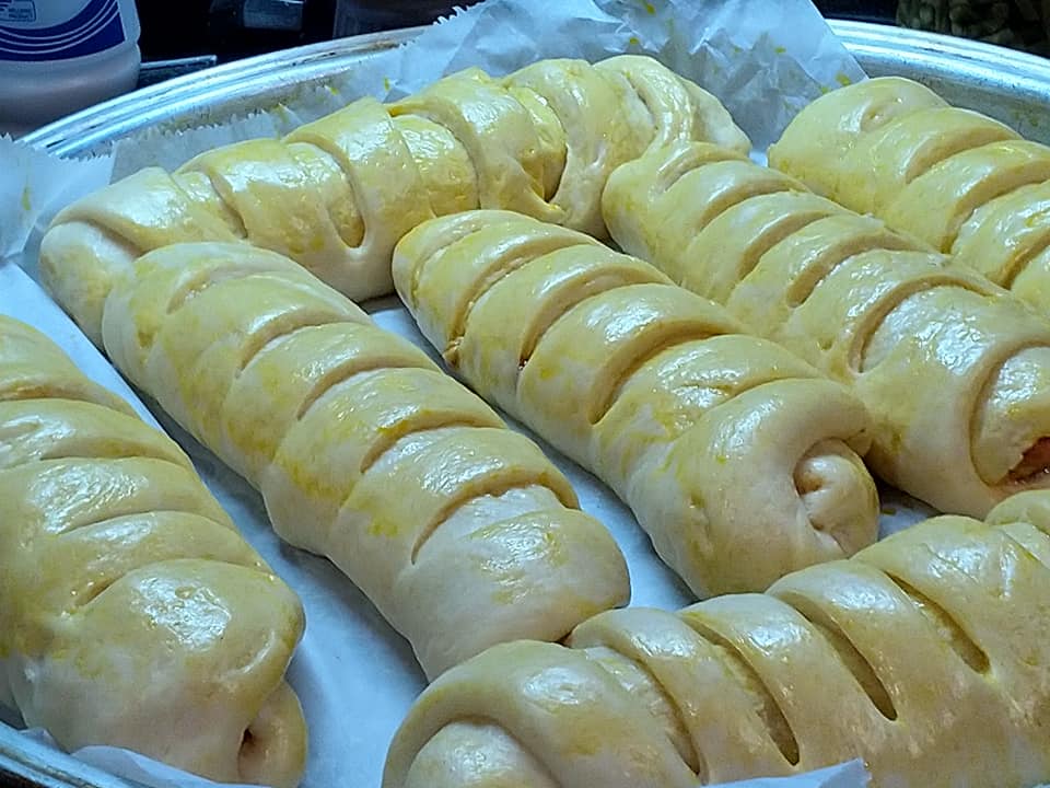 Κοβουμε με το ρολακι η με μαχαιρι τη ζυμη στο επανω μερος! Βαζουμε λιγη κετσαπ και μουσταρδα στο κατω μερος και τοποθετουμε το λουκανικο! Κλεινουμε τη ζυμη απο κατω προς τα επανω σαν ρολο και τα τοποθετουμε σε ταψι με λαδοκολλα! Αφηνουμε να διπλασιαστει η ζυμη ! Κτυπαμε τους κροκους με λιγο γαλα και αλειφουμε τη ζυμη μας! Πασπαλιζομε με σουσαμι η παπαρουνοσπορο! Τα αφηνουμε να φουσκωσουν και ψηνουμε τους 180 β για 30λ Μια ζυμη που θα σας ενθουσιασει! Καλη επιτυχια σε ο,τι κανετε!!!