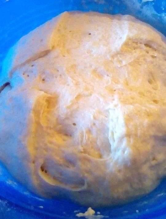Την σκεπάζουμε για 2 ώρες!Στην συνέχεια την βάζουμε στον πάγκο και την ανοίγουμε ένα φύλλο.