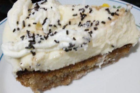 Βάζουμε την κρέμα μιλφέιγ πάνω από την βάση μας και από πάνω ρίχνουμε την σαντιγί. Γαρνίρουμε με καρύδια, ή τρούφα, η καρύδα.