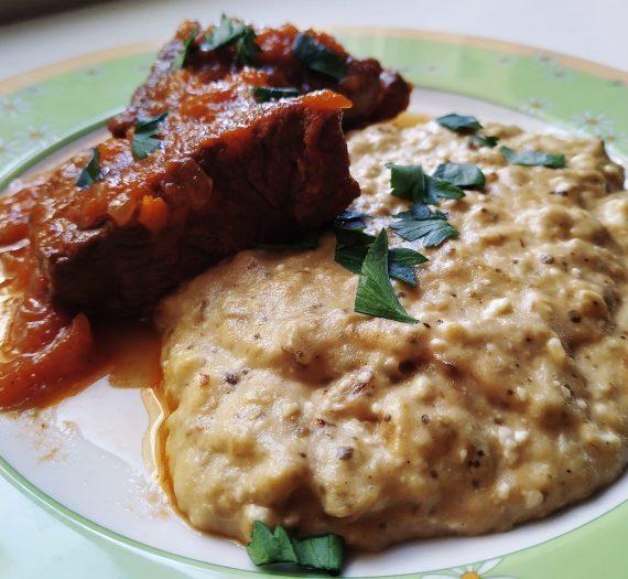 Συνταγή για μαριναρισμένο μοσχάρι με πουρέ μελιτζάνας. Μαλακό και ζουμερό μοσχάρι, που έχουμε μαρινάρει από την προηγούμενη, συνοδευμένο με πουρέ από μελιτζάνα. Ότι πρέπει για το Κυριακάτικο τραπέζι σας!
