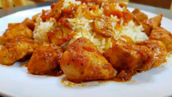 Στα 20 λεπτά, δοκιμάζουμε, εάν η σάλτσα είναι γευστική και εάν το κοτόπουλο έχει βράσει και αναλόγως προσθέτουμε ή όχι μπαχαρικά και νερό.