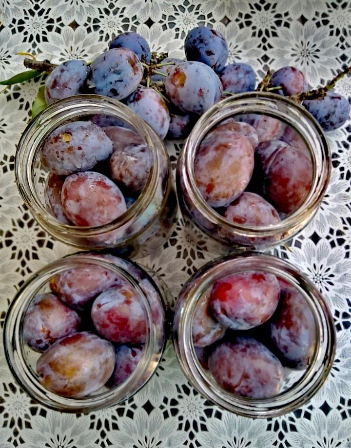 Αρχικά πλένουμε καλά τα φρούτα μας και γεμίζουμε με αυτά, τα αποστειρωμένα βάζα. Σε μια κατσαρόλα ετοιμάζουμε το σιρόπι και βάζουμε το νερό και την ζάχαρη μαζί με τον χυμό των λεμονιών. Τα βράζουμε όλα μαζί και φτιάχνουμε ένα αραιό σιρόπι. Το βράζουμε για 8 λεπτά.