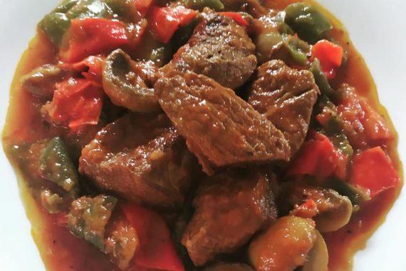 Συνταγή για μοσχαράκι κοκκινιστό με πιπεριές και μανιτάρια που λιώνει στο στόμα