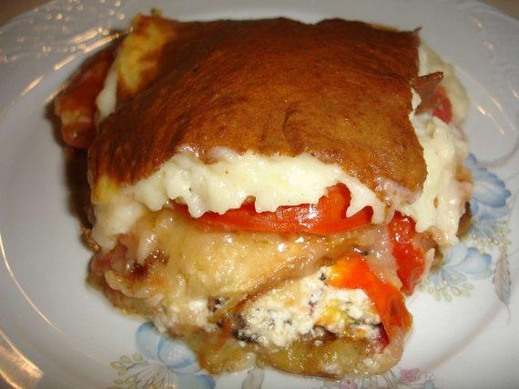 Υλικά Μία μεγάλη μελιτζάνα κομμένη σε φέτες 2 κολοκυθάκια κομμένα σε φέτες 1 μικρό πακετάκι μανιτάρια καθαρισμένα και κομμένα σε φέτες 2 ντομάτες κομμένες σε ροδέλες 200 γρ. φέτα τριμμένη με το χέρι σε χοντρά κομμάτια 3 φλυτζάνια μπεσαμέλ έτοιμη ή χειροποίητη