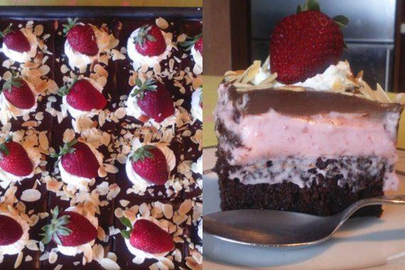 Είναι μία πάστα ταψιού που εκτός του γεγονότος ότι είναι πολύ όμορφη εμφανισιακά είναι και πολύ νόστιμη. Το χειροποίητο κέικ, η μους φράουλας και η γκανάζ σοκολάτας δένουν υπέροχα μαζί και δημιουργούν ένα υπέροχο γλυκό!