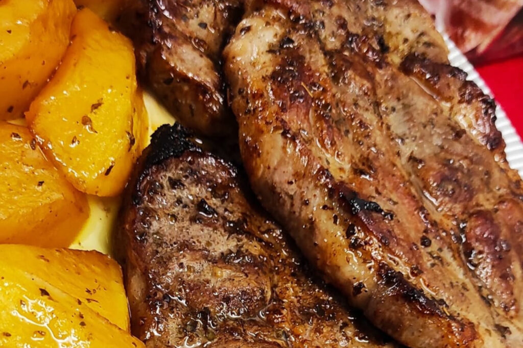 Η Τσικνοπέμπτη είναι για τους καλοφαγάδες και αυτή τη φορά θα σου δείξουμε πώς μπορείς να φτιάξεις χοιρινές μπριζόλες λαιμού στο σχαροτήγανο, σε λιγότερο χρόνο και πιο υγιεινά τις οποίες θα τις συνοδεύσεις με πατάτες φούρνου. Μην ακούς υγιεινά και νομίζεις ότι θα στερηθείς γεύση. Αυτές οι μπριζόλες φούρνου είναι σα να ψήθηκαν στα κάρβουνα. Ή και λίγο καλύτερες.