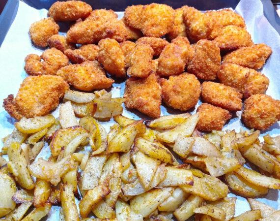 Τραγανές κοτομπουκιές με πατάτες στον φούρνο, που μοιάζουν με τηγανιτές…αλλά δεν είναι. Το τέλειο φαγητό για το ολοήμερο.