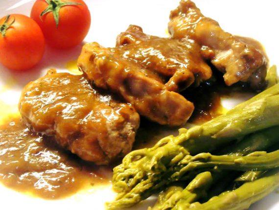 1 Μεγάλο ψαρονέφρι 2 κουταλιές μαργαρίνη 1 κουτ σούπας πολτός σκόρδου 1/3 λευκό κρασί η κόκκινο 4 κουταλιές βαλσάμικο 2κουταλιες σούπας μέλι 2 κουταλιές σουπ καλή μουστάρδα 1κουταλια σούπας κορν φλάουρ διαλυμένο σε μισό ποτήρι νερό 1 κονσέρβα Σπαράγγια!! Αλάτι πιπέρι θυμάρι.
