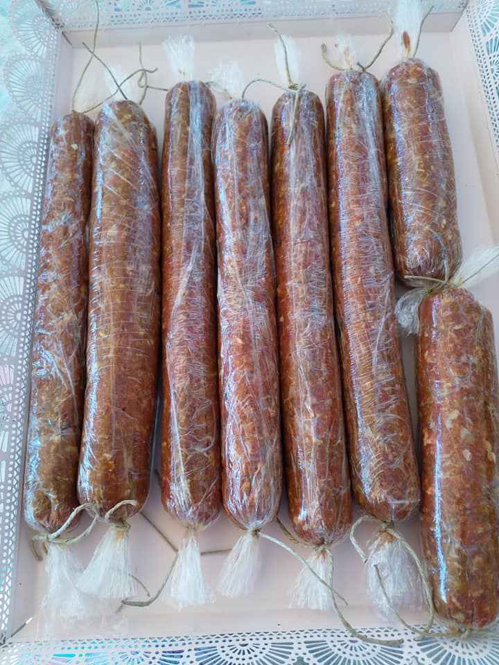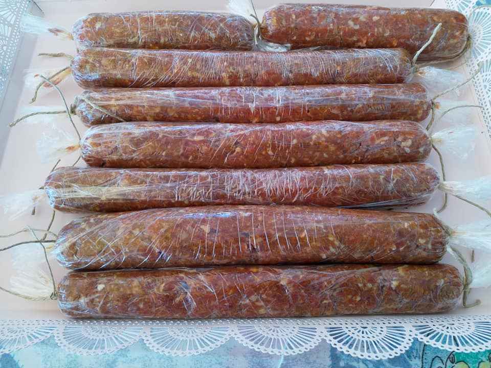 Σ ενα μπολ μεγαλο βαζω τον κιμα με ολα τα υλικα! Ζυμωνω καλα τον κιμα για 10 λ! Τυλιγω με μια μεμβρανη το μπολ και το βαζω για 24 ωρες στο ψυγειο! Μετα το 24ωρο βγαζω το μπολ απο το ψυγειο! Απλωνω τη μεμβρανη στον παγκο της κουζινας ,παιρνω 2 χουφτες κιμα στα χερια μου και το τοποθετω στη μεμβρανη ! Τυλιγω τον κιμα με τη μεμβρανη ,μεχρι να γινει ενα μπαστουνακι μακροστενο! Πιανω τα ακρα της μεμβρανης και σπρωχνω τον κιμα και απο τις δυο πλευρες για να ενσωματωθει ο κιμας και να γινει πιο σφιχτος! Τα δενω με σπαγγο και απο τις δυο πλευρες! Μολις τελειωσω ολη τη διαδικασια τα βαζω στην καταψυξη και τα διατηρω μεχρι να φαγωθουν! Βγαζω απο την καταψυξη ενα μαστουνακι οποτε θελω για γρηγορο φαγητο και το αφηνω 10λ με ενα τεταρτο ,οχι να ξεπαγωσει!