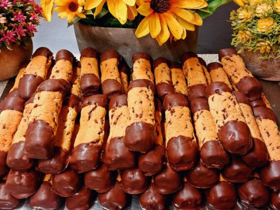 Ψιλοκόβουμε την κουβερτούρα και προσθέτουμε το ηλιέλαιο. Λιώνουμε την σοκολάτα στα μικροκύματα ή σε μπεν μαρί. Βουτάμε τα μπισκότα στη σοκολάτα από την μία και την άλλη άκρη και τα βάζουμε στην άκρη. Μόλις στεγνώσει η κουβερτούρα είναι έτοιμα.