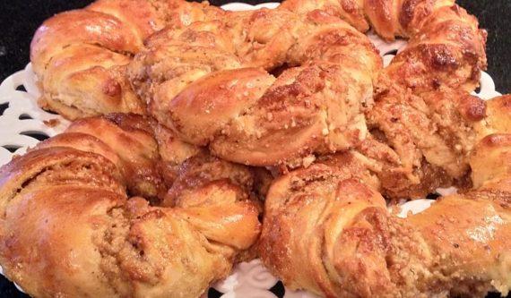 Τα αφήνουμε για μισή ώρα περίπου και τα αλείφουμε με γάλα και αυγό. Τα ψήνουμε σε προθερμασμένο φούρνο στους 180 βαθμούς Κελσίου για 15 με 20 λεπτά στον αέρα. Όταν ροδίσουν είναι έτοιμα.