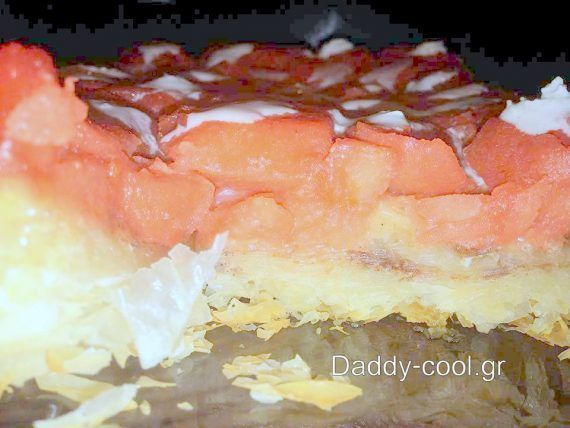 ΤΑΡΤΑ ΚΥΔΩΝΙΟΥ ΜΕ ΦΥΛΛΟ ΚΡΟΥΣΤΑΣ Υλικα Ενα πακετο φύλλα κρούστας λίγο λιωμένο βούτυρο 1-2 κ.σ. ζάχαρη 5 μέτρια κυδώνια 2-1/2 φλ. ζάχαρη 4 φλ. νερό το χυμό από μισό λεμόνι ξυσμα πορτοκαλιού 1 κλωνάρι αρμπαρόριζα γιαούρτι για το σερβίρισμα ΕΚΤΕΛΕΣΗ Πλένουμε σκουπίζουμε και κόβουμε στα 4 τα κυδώνια! . Καθαρίζουμε τη φλούδα και την καρδιά! Τα βάζουμε όλα σε κατσαρόλα μικρή με τη ζάχαρη και το νερό και αφήνουμε να πάρουν βράση! Χαμηλώνουμε τη φωτιά ίσα που να κοχλάζει το σιρόπι και βράζουμε για περίπου 2 ώρες! Σε αυτή τη φάση έχει αρχίσει να παίρνει ελαφρύ κόκκινο χρώμα. Προσθέτουμε το χυμό λεμόνιου, τη φλούδα πορτοκάλι και την αρμπαρόριζα! Δυναμώνουμε λίγο τη φωτιά και συνεχίζουμε το βράσιμο μέχρι να κοκκινίσουν τα κυδώνια και να δέσει το σιρόπι! Αφαιρούμε την αρμπαρόριζα ! . Για την τάρτα Σε ενα μκρο τσερκι 24 εκ. ντύνουμε λαδόκολλα να εξέχει στα πλαϊνά. Αδειάζουμε μέσα τα κυδώνια στήνοντας σε σειρές με την καμπύλη πλευρά να ακουμπάει στην λαδόκολλα. Φροντίζουμε να καλυφτεί η βάση με φρούτα χωρίς να μείνει πουθενά κενό. Περιχύνουμε με λίγο σιρόπι1 Αν θέλουμε ρίχνουμε 2-3 κομματάκια μικρά βούτυρο για περισσότερη νοστιμιά. Ανοίγουμε τα φύλλα στον πάγκο! Ένα ένα τα βουτυρώνουμε και πασπαλίζουμε λίγη ζάχαρη και κανελλα! Τα τσαλακώνουμε και τα βάζουμε αφράτα τσαλακωμένα στην επιφάνεια. Ψήνουμε στους 180 β σε καλά προθερμασμένο φούρνο στον αέρα, στη μεσαία σχάρα για περίπου 30′, να ροδίσει το φύλλο. Αφήνουμε να σταθεί το γλυκό για 10′ κι έπειτα αναποδογυρίζουμε σε πιατέλα. Σερβίρουμε με γιαούρτι η σκετο! Απολαύστε το σχεδόν ζεστό, είναι μαγεία οι υφές οι γεύσεις και τα αρώματα. Απλό, οικονομικό και πολύ εντυπωσιακό! Για να γίνουν τα κυδώνια κόκκινα πρέπει να σιγοβράσουν για αρκετή ώρα. Είναι σημαντικό τα φρούτα να είναι ώριμα, σφιχτά και χωρίς χτυπήματα. Αποφύγετε τα μαλακά κυδώνια γιατί υστερούν σε γεύση, υφή και αρώματα.