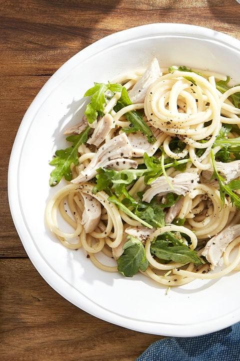 2. Αν σας έμεινε κοτόπουλο ψητό, κόψτε το μικρά κόμμάτια και βάλτε το σε μια φρέσκια μακαρονάδα λαδιού μαζί με φρέσκια πρασινάδα. Μην ξεχάσετε να πασπαλίσετε με πολύ πιπέρι.