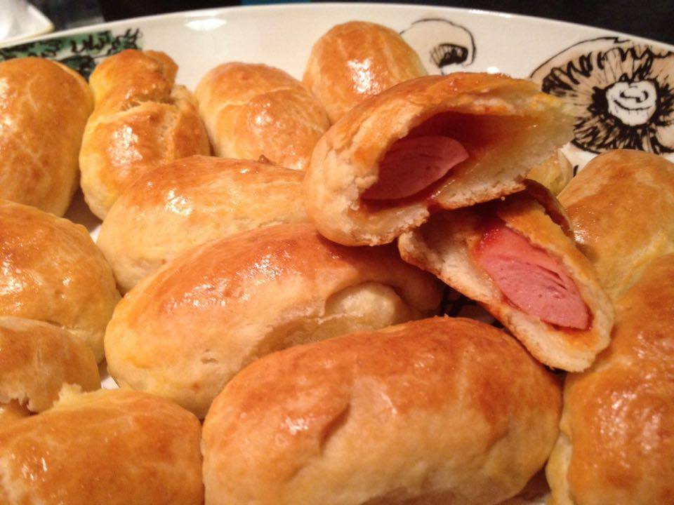 Εκτελεση: Τα ζυμωνουμε ολα μαζι και φτιαχνουμε μια απαλη ζυμη που ελαφρως κολλαει. Βαζουμε στο ψυγειο καλυμμενο με μεβρανη για μιση με μια ωρα. Χωριζουμε τη ζυμη σε 25-30 μπαλακια σε μεγεθος λιγο μεγαλυτερο του καρυδιου. Ανοιγουμε το καθενα σε στενομακρο φυλλαρακι στην παλαμη μας και βαζουμε μεσα ενα λουκανικακι η λιγη φετα τριμμενη η ενα τριγωνο τυρακι λαβας και κλεινουμε με τη μερια της ενωσης προς τα κατω. Το σχημα να ειναι στενομακρο! Τα αλειφουμε με ενα χτυπημενο αυγο και ψηνουμε στους 180 βαθμους για 25′ περιπου.Μην τα παραψησετε! Τα γραμμαρια των υλικων ειναι ακριβως και δεν προσθετουμε αλλο αλευρι! Καλη επιτυχια!!