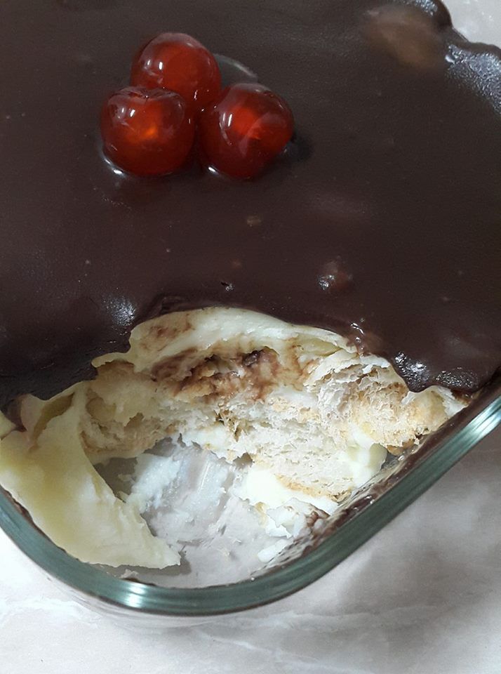 Τεμπελογλυκό….#σανπροφιτερολ! Αυτό σίγουρα δεν είναι προφιτερόλ αλλα είναι ένα νόστιμο γλυκάκι που το λες και #τεμπελοπροφιτερολ! Υλικά •2 μικρά σακουλάκια κρουασανάκια με γέμιση κρέμα •2 φακελάκια άνθος αραβοσίτου βανίλια •γάλα φρέσκο Για τη γκανάζ •50γρ σοκολάτα κουβερτούρα •1 γάλα εβαπορέ (μικρό 170γρ) •1 κουτ.γλυκού βούτυρο •3-4 κουτ.σούπας μέλι Κόβουμε τα κρουασανάκια στη μέση και τα βάζουμε σε ένα πυρέξ η σε ατομικά μπολάκια. Ετοιμάζουμε τη κρέμα βανίλιας σύμφωνα με τις οδηγίες και τη ρίχνουμε πάνω στα κρουασανάκια. Αφήνουμε να κρυώσει καλά η κρέμα. Αφού κρυώσει ξεκινάμε να φτιάξουμε τη γκανάζ. Για τη γκανάζ Σε ένα κατσαρολάκι ζεσταίνουμε το γάλα. Όταν ζεσταθεί καλα ρίχνουμε τη ψιλοκομμένη σοκολάτα και ανακατεύουμε μέχρι να λιώσει.Το αποσύρουμε από τη φωτιά και προσθέτουμε το βούτυρο και το μέλι συνεχίζοντας το ανακάτεμα. Το αφήνουμε να κρυώσει λίγο και το ρίχνουμε πάνω στη κρέμα που έχουμε ετοιμάσει.. Βάζουμε το γλυκό στο ψυγείο για 2 ωρες να παγώσει και σερβίρουμε…