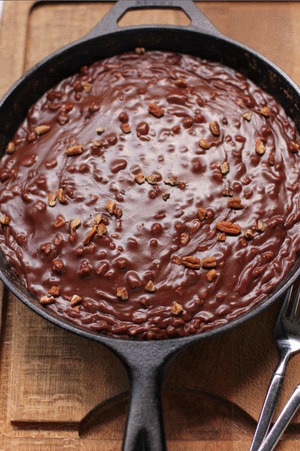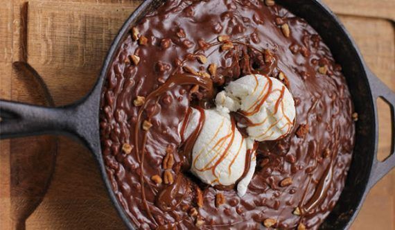 Αυτό το γλυκό με ξετρέλανε!!!! Δεν ξέρω πως να το χαρακτηρίσω γιατί πραγματικά μόνο που το βλέπεις λιώνεις!Είναι σκέτη σοκολατοκόλαση!!!! Στην ουσία πρόκειται για μία στρώση σοκολατένιου κέικ, ένα γλάσο σοκολάτας που δίνει το έξτρα σοκολατένιο άγγιγμα και τη δική σου επιλογή παγωτού (ιδανικά, κρέμα με καραμέλα). Και όλα αυτά μαγειρεμένα και αν θέλεις σερβιρισμένα μέσα σε ένα αντικολλητικό τηγάνι.