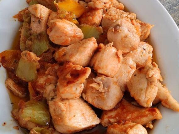 Δείτε παρακάτω την εκτέλεση για τη τηγανιά κοτόπουλο με χρωματιστές πιπεριές της Γκόλφως: