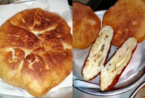 Τηγανόψωμο αφράτο και πεντανόστιμο γεμιστό με γκούντα και γαλοπούλα. Μπορείτε φυσικά να βάλετε κι άλλα υλικά στην γέμιση και να το κάνετε να μοιάζει ακόμη και με σκεπαστή πίτσα αλλά εμείς επειδή βρισκόμαστε σε περίοδο διατροφής (ΓΕΛΑΜΕ ΔΥΝΑΤΑ), είπαμε να αρκεστούμε σε αυτά.