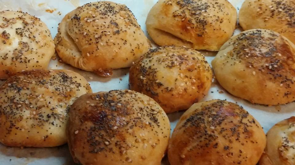 ζεστα τυροπιτακια με φιλαδελφεια και ανθοτυρο!!! Οσοι πιστοι προσελθετε!!!Καλο απογευμα!!! Τυροπιτακια αφρατα με σοδα {μεταλλικο νερο } Υλικα 1 φλ γιαουρτι 1 φλ σπορελαιο 2 φλ σοδα {μεταλλικο νερο } 2 αυγα τα ασπραδια {οι κροκοι για αλειμμα } 1 μπεικιν 1 κ σ ζαχαρη 1 1|2 κγ αλατι 1 μαγια 42γρ φρεσκια η 1 φακ ξηρη μαγια αλευρι οσο παρει λιγο βουτυρο λιωμενο για αλειμμα παπαρουνοσπορο σουσαμι φιλαδελφεια και ανθοτυρο για τη γεμιση Εκτελεση Σε μια λεκανη βαζω τη μαγια ,το μεταλλικο νερο, τη ζαχαρη και ανακατευω να διαλυθει καλα η μαγια μου! Στη συνεχεια ριχνω το γιαουρτι ,το σπορελαιο. τα ασπραδια,το μπεικιν, και ανακατευω! Ριχνω σιγα σιγα το αλευρι και αρχιζω να ζυμωνω μεχρι που να γινει μια ευπλαστη ζυμη ωστε να μην κολλαει στα χερια μας! Αφηνω το ζυμαρι μας να ξεκουραστει και να διπλασιαστει! Στη συνεχεια το χωριζω σε 30 μπαλακια μεγεθος μανταρινιου! Ανοιγω με το χερι μου το μπαλακι το βουτυρωνω και με το μικρο κουταλακι του γλυκου βαζω φιλαδελφεια και ανθοτυρο! Το κλεινω το ζυμαρακι μου σαν φακελο και καθε φορα βουτυρωνω! Τοποθετω το μπαλακι στο ταψι με τη λαδοκολλα! Αλειφω με τον κροκο του αυγου και τελος ριχνω απο πανω σουσαμι και παπαρουνοσπορο! Ψηνω σε προθερμασμενο φουρνο στους 180 β για 25 με 30 λ ! Μεχρι να ροδισουν! Μπορειτε να βαλετε ο,τι τυρι θελετε εσεις στη γεμιση! Καλη επιτυχια!