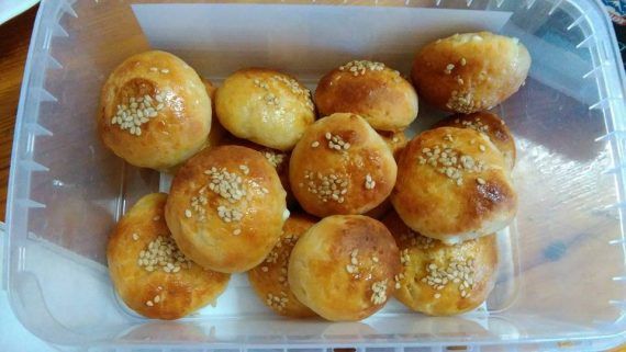 Αφου κανουμε τριμμα τη φετα τη ριχνουμε στο αλευρι μετα το γιαουρτι το ηλιελαιο τα 2 αυγα το αλατι τη σοδα και ζυμωνουμε ισως χρειαστειτε λιγο αλευρι ακομα μεενα πηρε μια χουφτα ακομα για.να μπορω.να.πλασω τα τυροπιτακια….. Πλαθουμε ενα ενα μπαλακι το παταμε ελαφρα με.τη παλαμη μας και στη μεση το ζουλαμε με.τον.αντιχειρα να.κανει.λακουβιτσα…. Χτυπαμε ενα αυγο και αλειφουμε το καθε τυροπιτακι και τα πασπαλιζουμε με λιγο σισαμι στην λακουβιτσα…. Τα ψηνω σε προθερμασμενο φουρνο στον αερα στους 200° ¢ για περιπου 15 λεπτακια…. και ετοιμααααα!!!! Ειναι πολυ αφρατα να ξερετε και.πολυ νοστιμα σε γευση… Περιμενω και τα δικα σας να.φτιαξετε!!!!