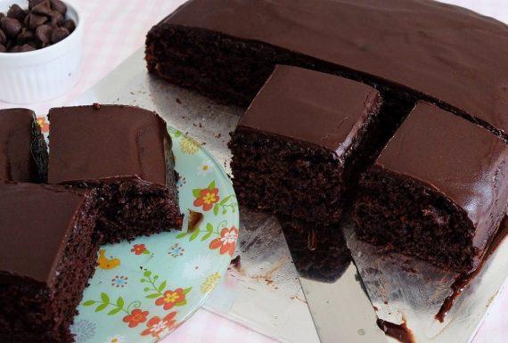 Συμβουλή: Χρησιμοποιείστε μια φόρμα με αποσπώμενα τοιχώματα και ξεφορμάρετε το κέικ αφού έχει στερεοποιηθεί η σοκολατένια γκανάζ.