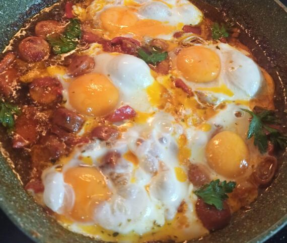 Συνταγή για Αυγά με λουκάνικα και ντομάτα το πιο γρήγορο φαγητό για τα καλοκαιρινά μεσημέρια και φυσικά ιδανική συνταγή για εσάς που είστε διακοπές και θέλετε να φτιάξετε κάτι γρήγορο.