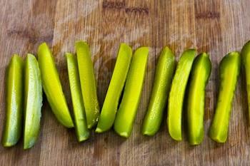 Ξεκινήστε να κόβετε τα αγγουράκια τουρσί κατά μήκος σε τέταρτα ή έκτα, ανάλογα με