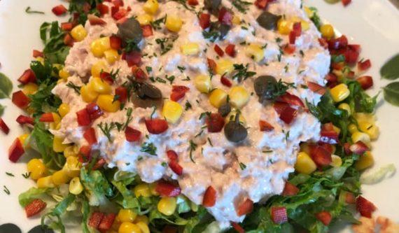 Σήμερα θα ασχοληθούμε με το κεφάλαιο “σαλάτα”. Πεντανόστιμη τονοσαλάτα για μπουφέ με κάπαρη, καλαμπόκι, μαρούλι, μαγιονέζα και πιπεριά Φλωρίνης που θα κάνει τους καλεσμένους σας να ξετρελαθούν. Είναι πεντανόστιμη, ελαφριά και η κάπαρη της χαρίζει μία ιδιαίτερη γεύση. Δείτε παρακάτω την εκτέλεση της συνταγής: