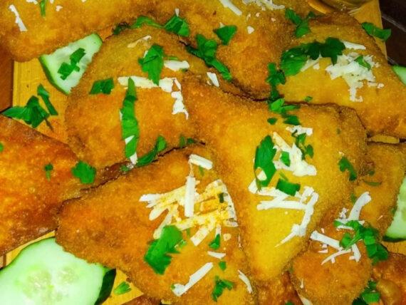 Δείτε παρακάτω την εκτέλεση για τις τορτίγιες πανέ γεμιστές με κοτόπουλο: