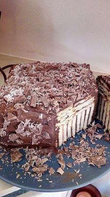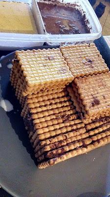 Δηλαδή βάζουμε το μπισκότο,λίγο μείγμα και από πάνω άλλο μπισκότο το οποίο αυτό βουτηγμένο στο γάλα κακάο. Τα βάζουμε έτσι όλα.στην σειρά. Συνεχίζουμε την ίδια διαδικασία με τα υπόλοιπα μπισκότα με την διάφορα τα βάζουμε επάνω στην σειρά. Τελειώνοντας βάζουμε.γύρω,πάνω το υπόλοιπο μείγμα καλά. Λιώνουνε και την σοκολάτα σε μπεν Μαρί και την τοποθετούμε απάνω,γύρω. Και φυσικά διακοσμούμε με τριμμένη σοκολάτα!!!!!