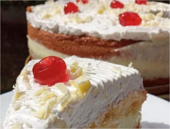 Συνταγή για αφράτη τούρτα με κρέμα λευκής σοκολάτας, σπιτικό παντεσπάνι και σαντιγί σκέτο αφρό, από την Τζένη Τσανακτσίδου για γιορτές, γενέθλια αλλά και για το γλυκό του Καλοκαιριού.