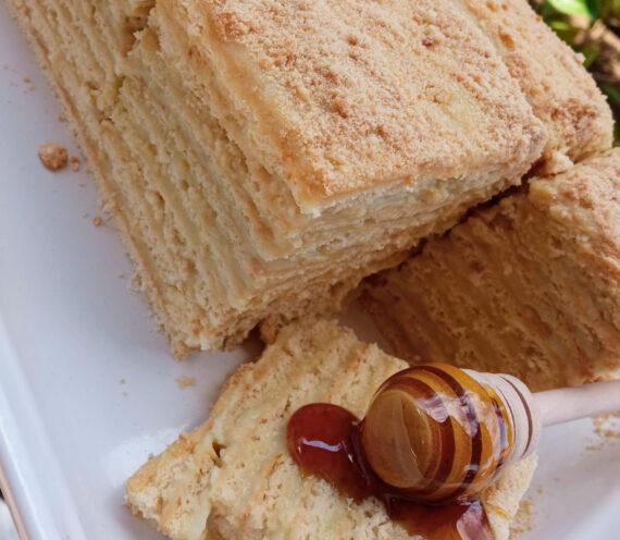 Συνταγή για Τούρτα Μεντόκ-Medovic: Η τούρτα Μεντόκ ή αλλιώς Medovic είναι μία πασίγνωστη ρώσικη τούρτα με μέλι και καραμελωμένο ζαχαρούχο. Η αγαπημένη μας Τζένη Τσανακτσίδου μας δείχνει την συνταγή!