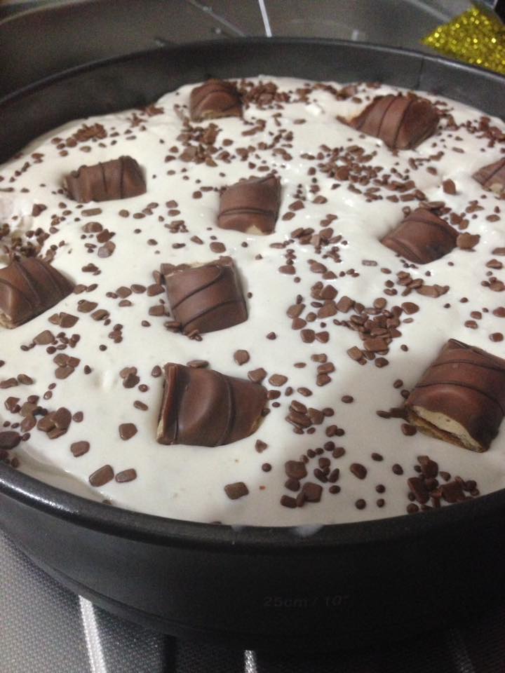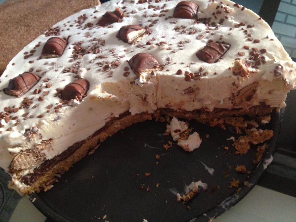 Υλικά: 1 morfat, 1 ζαχαρούχο, 1 εβαπορέ γάλα, 1 πακέτο μπισκότα digestive, περίπου 200γρ λιωμένο βούτυρο, λίγη μερεντα, πέντε πακέτα σοκολάτες kinder Bueno. Εκτέλεση : Φτιάχνουμε τη βάση τριβωντας τα μπισκότα στο μουλτι και μετα ρίχνουμε το λιωμένο βούτυρο να τα βρέξει καλα και με την ανάποδη πλευρά του κουταλιού στρώνουμε τη βάση στο τσερκι μας. Απο πανω απλώνουμε λίγη μερεντα παντου. Οσο θα φτιάξουμε τη κρέμα παγωτό, τοποθετούμε το τσερκι μεσα στη κατάψυξη. Για τη κρέμα: Χτυπάμε αρχικά τη φυτική σαντιγί morfat για 5 λεπτά να αφρατέψει καλα. Μετα προσθέτουμε το ζαχαρούχο και το χτυπάμε για αλλα 5 λεπτά. Έπειτα το γάλα εβαπορέ για αλλα 5 λεπτά να πήξει και να ειναι αφράτο το μείγμα. Στο τελος ρίχνουμε μεσα κομμάτια μπουενο και χτυπάμε για ενα λεπτό και ειναι έτοιμη. Βγάζουμε το τσερκι μας απο τη κατάψυξη και στρώνουμε απο πανω τη μισή κρέμα, απο πανω ρίχνουμε κομμάτια μπουενο που εχουμε σπάσει με τα χέρια, μετα την υπόλοιπη κρέμα και στο τελος απο πανω διακοσμουμε με τα υπόλοιπα μπουενο η τρούφα η οτι αλλο θελουμε! Το καλο σε αυτη τη συνταγή ειναι οτι η κρέμα θέλει μονο μια φορα χτύπημα στο σύνολο της..! Βάζουμε λοιπον το τσερκι στη κατάψυξη για μια νύχτα και την άλλη μερα ξεφορμαρουμε και ειναι έτοιμο!