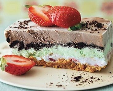 Υπέροχη τούρτα παγωτό με δύο γεύσεις. Φράουλας, με φρέσκες φράουλες, και σοκολάτα. Τραγανό υπέροχο crumble αμυγδάλου για την βάση, και μπισκότο oreo στη μέση. Μία μοναδική δροσιά για το καλοκαίρι!