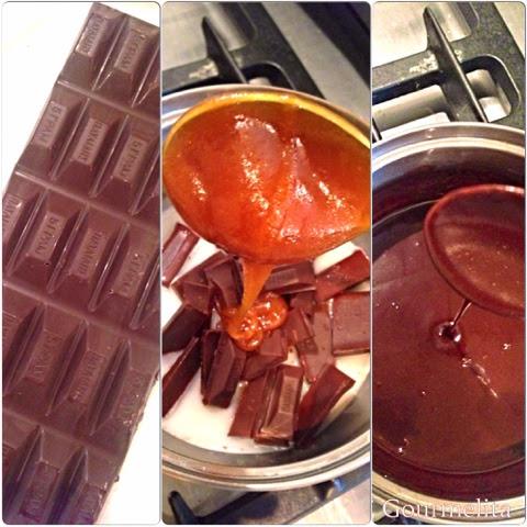 115 γρ κουβερτούρα 1/4 κούπας γάλα σόγιας ή ρυζιού 2 κσ μέλι
