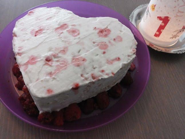 Με το έτοιμο παντεσπάνι και τη σαντιγί από κρέμα καρύδας μπορείτε από εδώ και πέρα να κάνετε ό,τι θέλετε. Εγώ έφτιαξα το παντεσπάνι στο ταψί και κατόπιν το έκοψα σε δύο καρδιές. Έβαλα μια στρώση κρέμα καρύδας συν λίγα βατόμουρα μεταξύ τους. Στο τέλος κάλυψα όλη την επιφάνεια της τούρτας με την κρέμα καρύδας και έριξα μερικές σταγόνες χυμό βατόμουρο. Στο ψυγείο διατηρείται μια χαρά, ακόμα και μερικές μέρες – αν περισέψει…