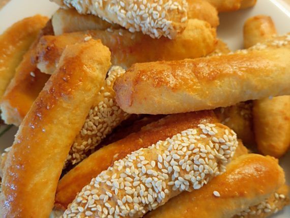 Τα αλμυρά κουλουράκια είναι τα αγαπημένα μας. Σήμερα λοιπόν θα σας δείξουμε κουλουράκια που θυμίζουν κριτσίνια τυριού. Αλμυρά κουλουράκια με κεφαλοτύρι, που τα μισά τα πασπαλίσαμε με σουσάμι και τα άλλα μισά τα αφήσαμε σκέτα. Είναι χορταστικά και νόστιμα και μπορούμε να τα απολαύσουμε όλες τις ώρες της ημέρας.